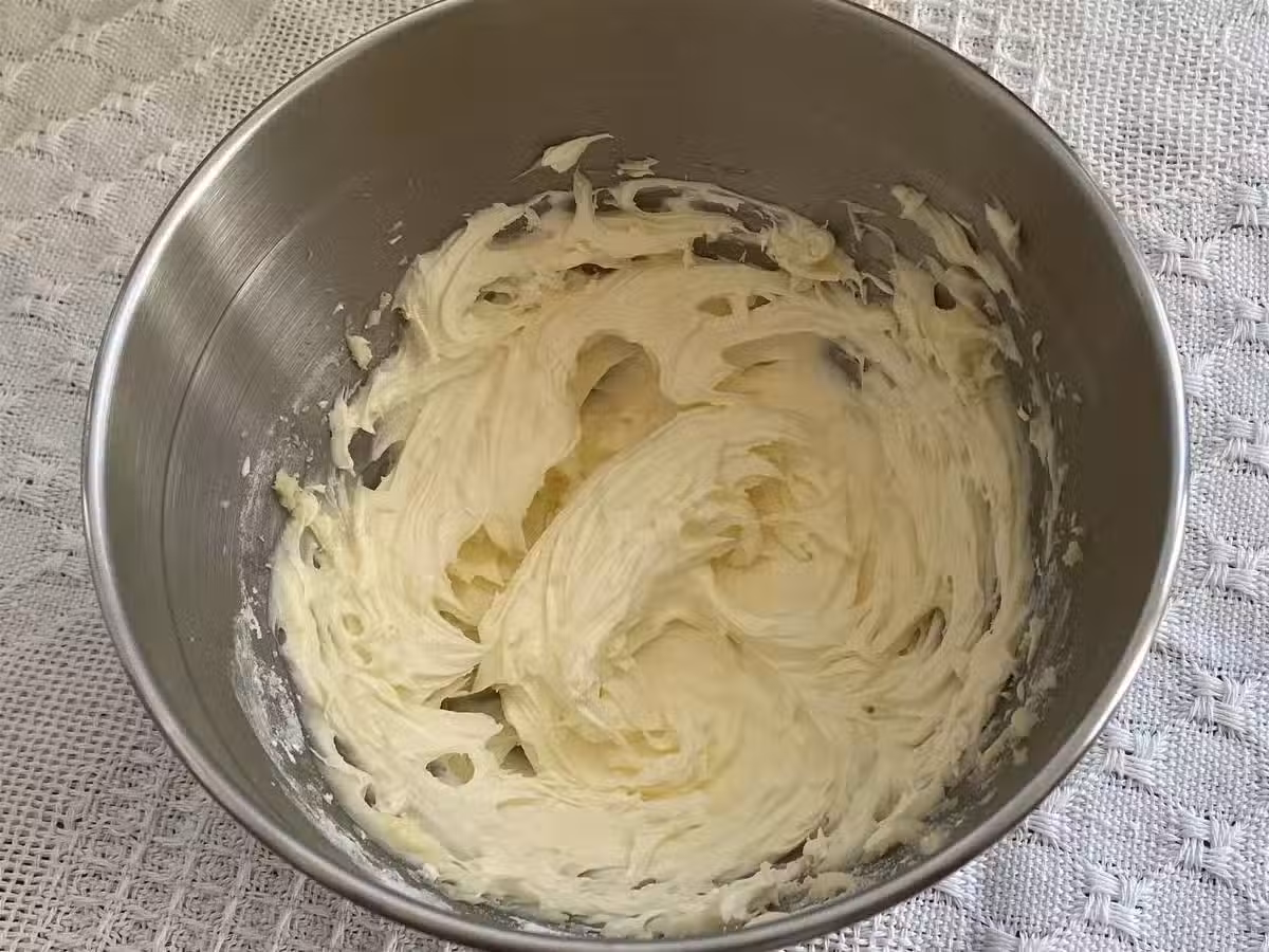 4.分多次加入打散的全蛋液,每一次都打發均勻再加下一次,直至打發蓬鬆。