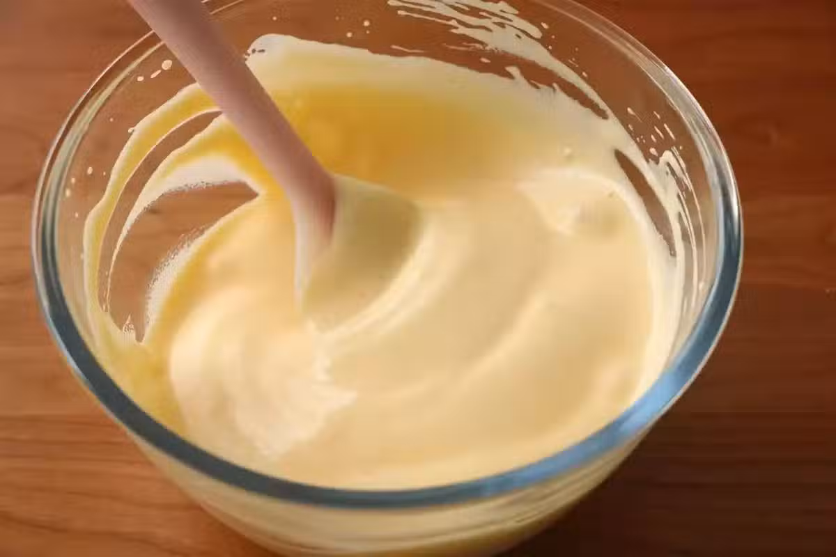 6、平底鍋刷一層黃油,或是沒有味道的食用油,把蛋糊倒進去;