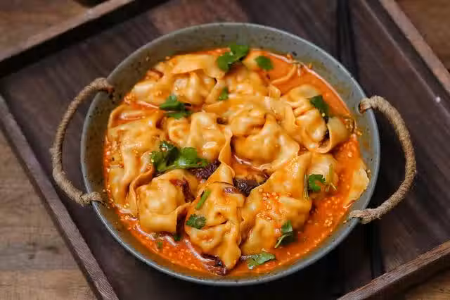 小時候搞不懂餛飩和餃子有什麼區別,不都是用麵皮包上餡料煮熟嗎?後來覺得餛飩比餃子更靈活一些,因為它可以適應不同湯底。我們最常見的餛飩就是清湯的,直接煮好加點鹽、紫菜和蝦皮,吃的時候根據個人喜好加辣椒油、陳醋和胡椒粉,口感稍微清淡一些。如果喜歡重口味的可以試試這款麻醬酸湯餛飩,酸辣入味超級過癮,真的好吃到沒朋友哇!