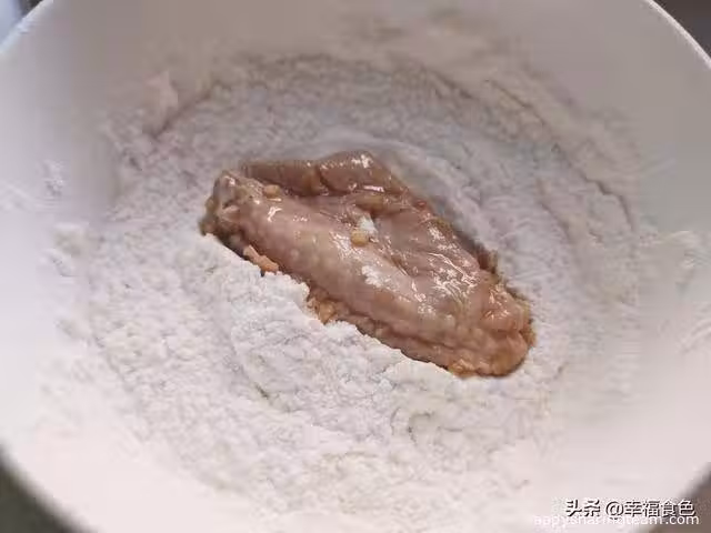 5、鍋里放入適量油,油溫五成熱時將雞翅放入鍋中,炸至兩面金黃。油溫一定要足夠,不然表皮炸的效果不好。