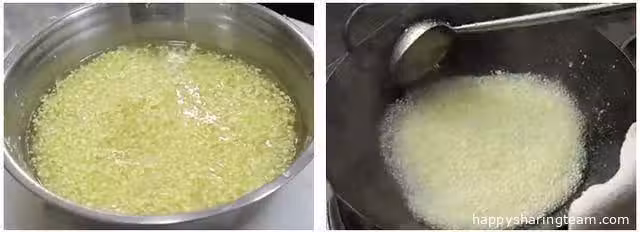 把金蒜盆里倒入大量清水,多清洗幾次,然後控干水分。這樣做的目的是,可以去除蒜末的辛辣澀味,同時還能防止下一步油炸的時候顏色發黑。這一步很重要,不要偷懶,否則下一步炸的時候,顏色很容易發黑,那就前功盡棄了。