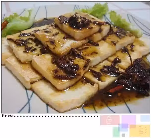 原料:豆腐、香椿醬(具體說是泡在菜籽油里的香椿,好像還不算是醬,暫時先這麼叫吧)、素蚝油