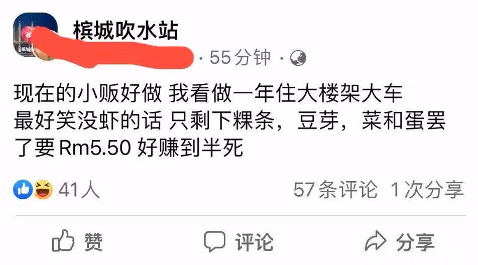 不難發現,近年來物價持續上漲,帶動了很多東西的上漲。就連我們平時吃的經濟飯或經濟粉,價格也變得不划算了。而且現在人們也不太出去享受了,因為外面的食物現在不是很便宜,而且數量還很少。有的人認為是小販從中賺差價,所以外面的菜才這麼高。但當然,也有人不這麼認為。近日,有人在臉書吹水站發文抱怨,沒有蝦的炒粿條竟然要RM5.50,結果卻被網民反發文炮轟?!到底是怎麼回事?