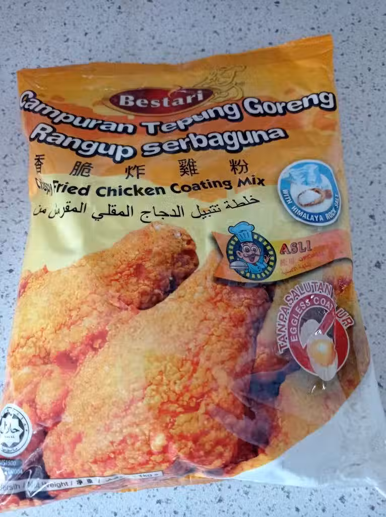 4. 包裹炸雞的粉,由麵粉和香脆炸雞粉混合而成。