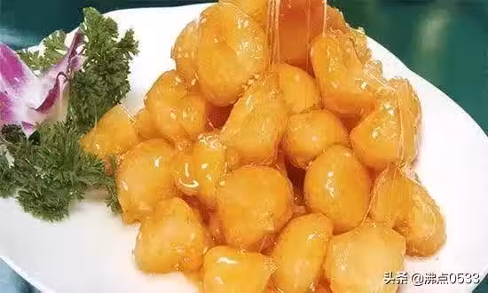 4.清水,白糖,慢慢受熱,慢慢攪動,鍋里的糖水融化,由大泡變小泡,顏色微黃,就火倒入豆腐掂鍋,使豆腐均勻沾上糖漿就可裝盤了。