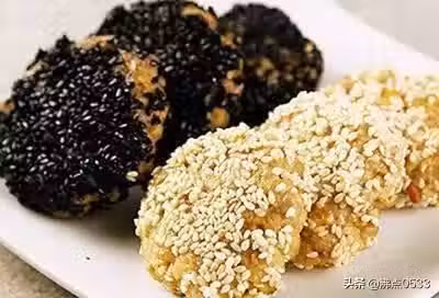 材料:北豆腐400克、芝麻150克、小麥麵粉20克、料酒5克、鹽4克、味精2克、五香粉1克、姜5克、植物油120克。