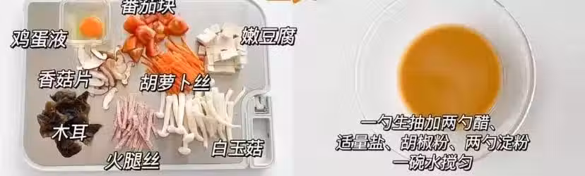 4、倒入提前調好的澱粉水,淋上蛋液,煮到濃稠時關火,撒上蔥花香菜即可