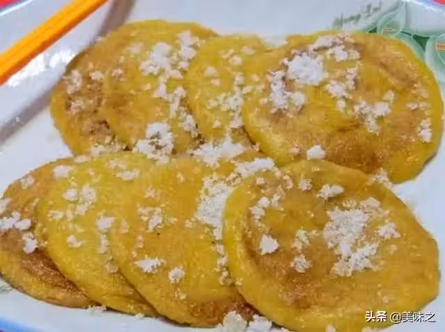 5、鍋里放油,兩面煎一下,完成,撒上糖霜開吃。