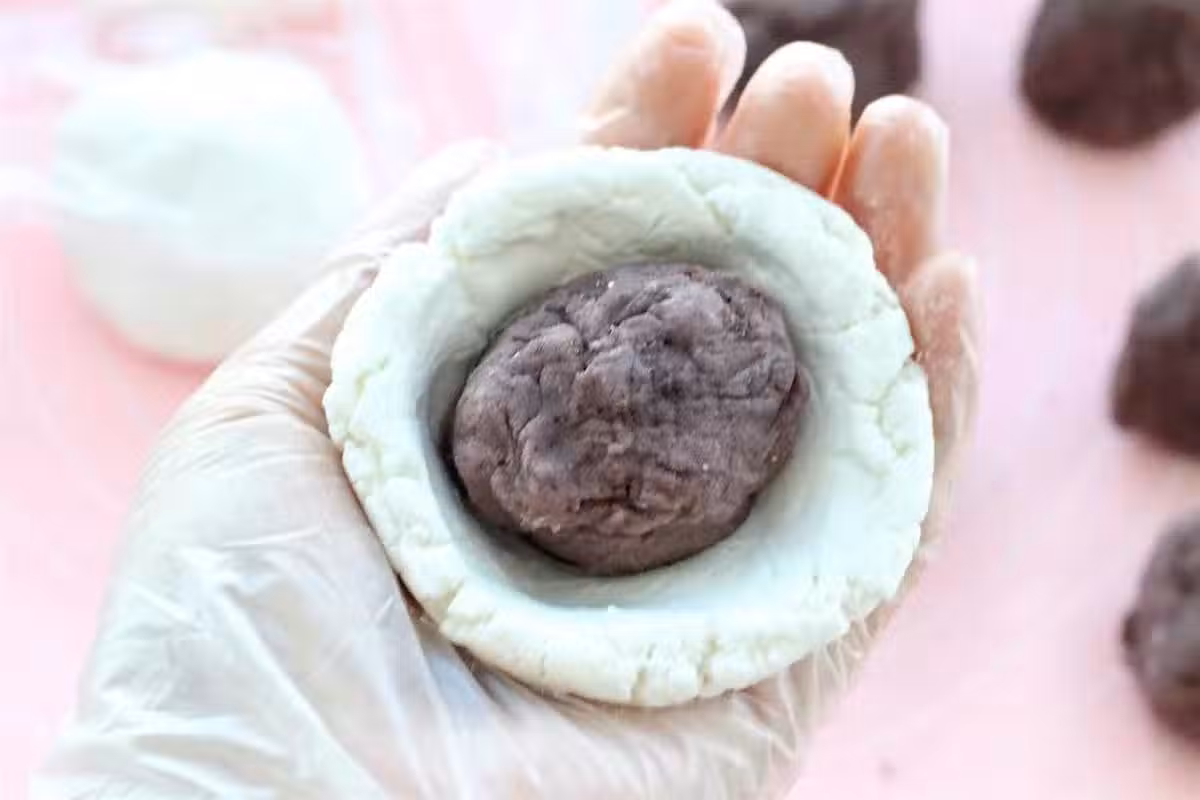 6.揉搓均勻按壓成餅胚,表面蘸一層麵包糠。
