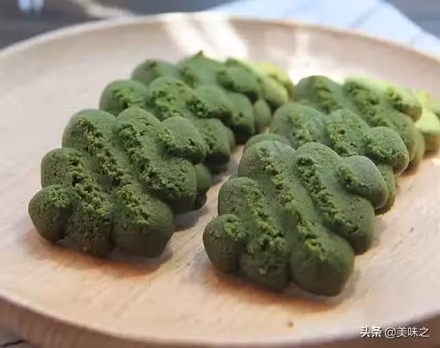 黃油70g、糖粉80g、蛋清60g、低筋麵粉130g、抹茶粉20g。