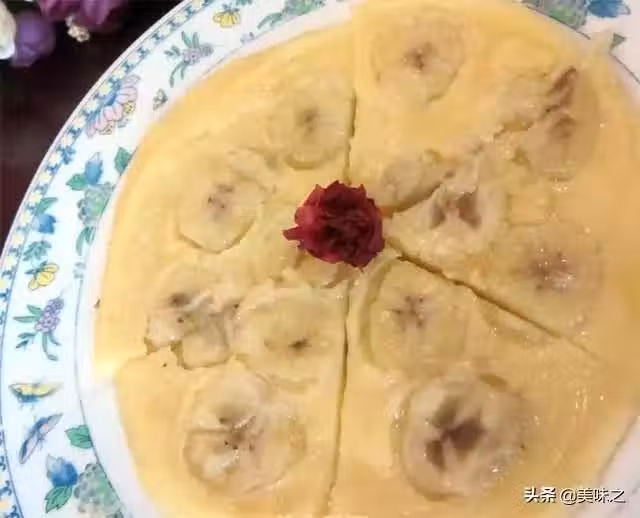 6、待未凝固時,把切好的香蕉片碼在上面。