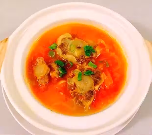 1.牛尾斬段洗凈後,倒入清水,浸泡1個小時,再下入鍋中加料酒、薑片焯水,去除牛尾的腥味和血水