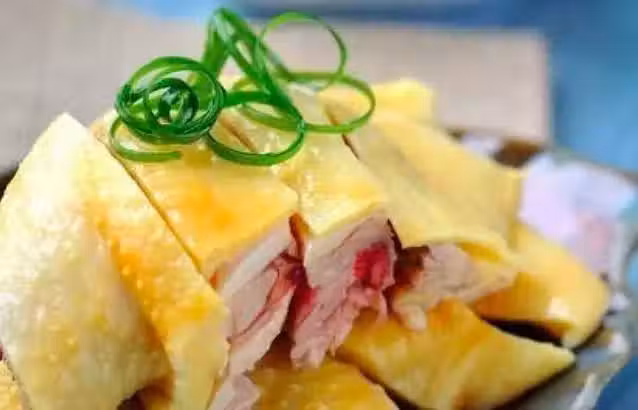 3、自然冷卻後撈出,在雞表面均勻的刷上麻油,切塊上桌