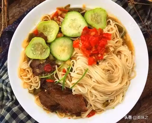 麵條200克、羊肉500克、黃瓜1根、大蒜6瓣、泡椒30克、油1勺、味極鮮1勺、胡椒粉1勺、牛肉濃湯寶1個、家樂雞粉調味料1勺。