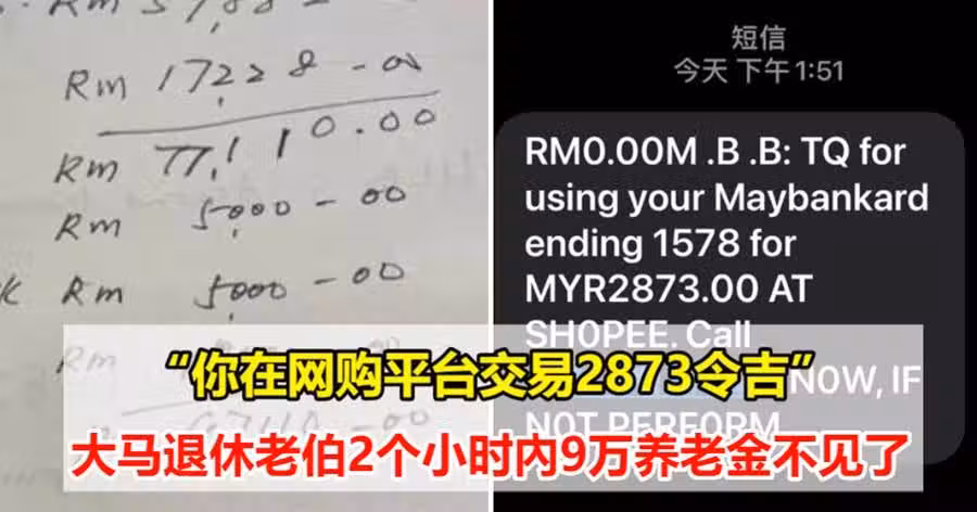「你在網購平台交易2873令吉」,大馬退休老伯2個小時內9萬養老金不見了
