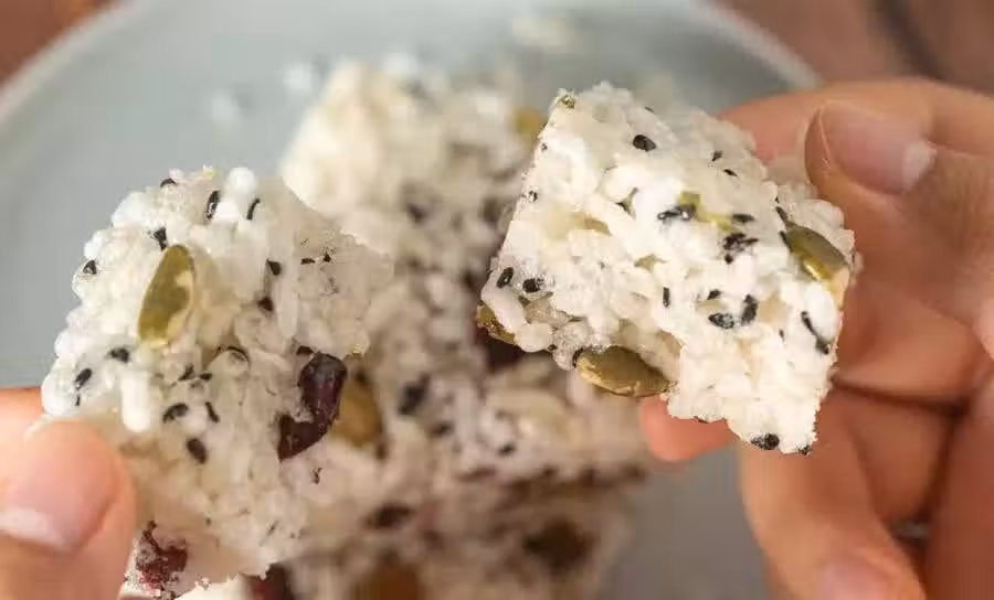 濃濃的穀物香氣里穿插著芝麻香和花生香,一重又一重,酸甜的蔓越莓乾和葡萄乾降低了甜度,連吃上幾塊都不會膩呢~