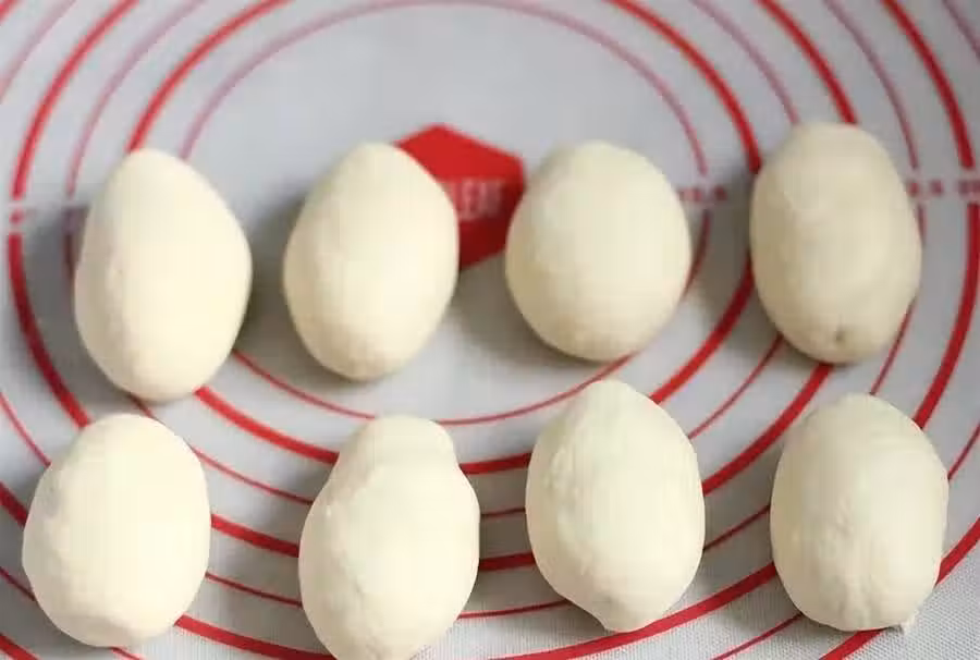 「5」取一個小面團搟成長圓形的薄面片,均勻地抹上一層芝麻醬;