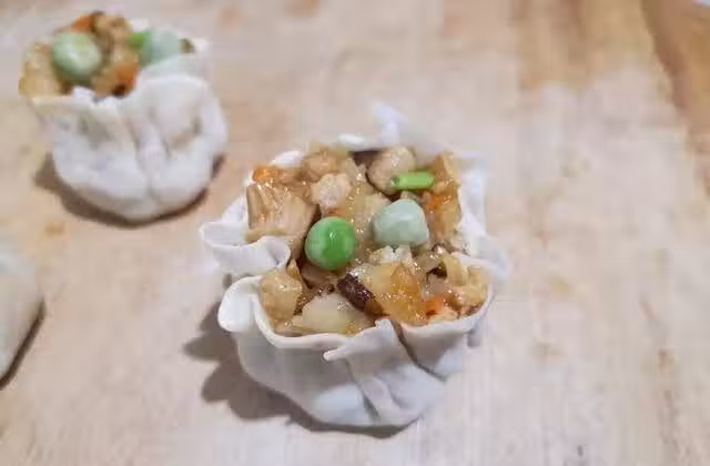 8、起鍋燒水,把包好的燒麥放到蒸鍋上,蒸9分鐘。之後不要著急打開,關火讓它再悶上一兩分鐘。
