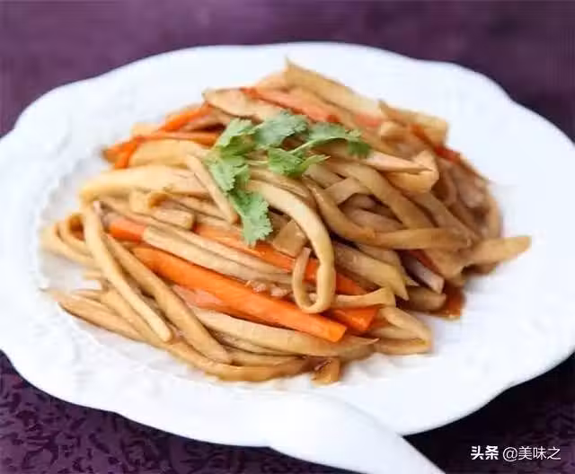 杏鮑菇適量、胡蘿蔔適量、蒜末適量、香菜適量、蚝油適量、生抽適量、白糖適量、料酒適量、雞精適量。