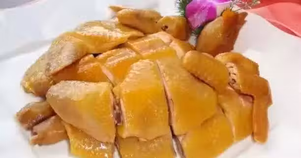 4、把醃好的雞用清水沖洗乾淨,再用幹毛巾吸幹水,然後放入蒸鑊蒸40分鐘左右就可以斬件裝盤。