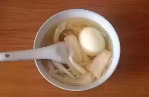 干腐竹10克,雞蛋2隻、冰糖適量、姜一小片