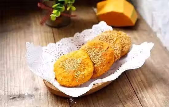 1. 將南瓜切塊去瓤,蒸熟後去皮搗成泥,加蜂蜜,麵粉,糯米粉,和成軟軟的南瓜麵糰。先做成小劑子,再壓成小圓餅,沾勻麵包糠