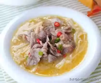食材:肥牛卷、金針菇、泡椒、青紅小米椒、姜蒜、白鬍椒粉、鹽、生抽、醋、高湯、魚露