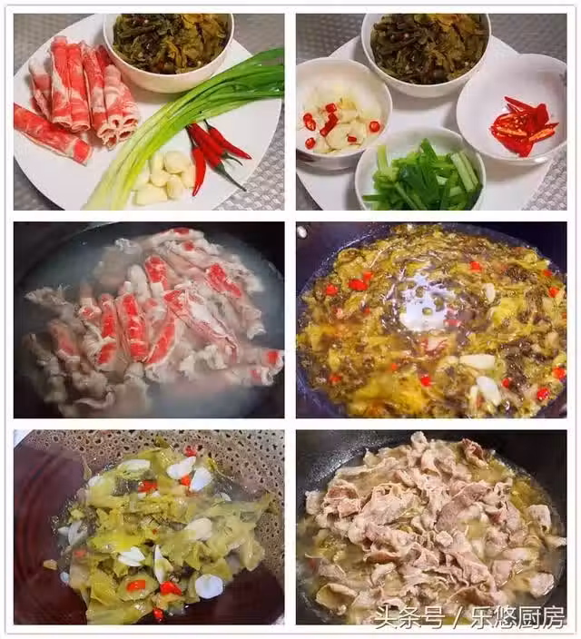 第六步:把牛肉片放入鍋中繼續煮開,加入少許雞精調味。然後連湯一起倒入碗內。