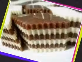 1 舀入一層美祿燕菜,待表面稍凝固時,再加入煉奶層。