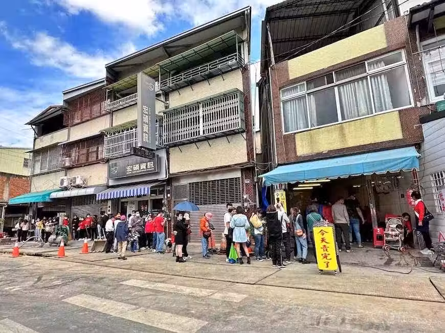 才剛登記完購買數量之後,店家剛打開鐵門,今天賣完了的牌子就搬出來了,晚到的朋友只能眼睜睜看著賣完,聞到濃濃的黑糖香卻吃不到啦…