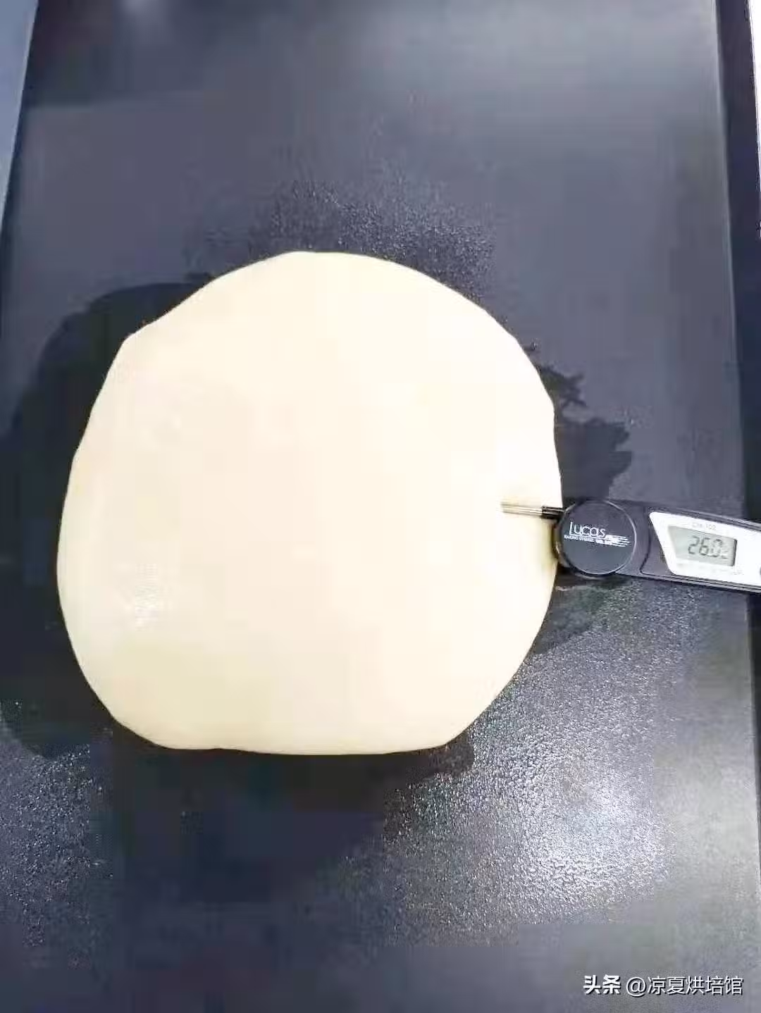 4溫度28℃,濕度80%,基礎發酵50分鐘左右。面團發酵至原體積的兩倍大左右,手指粘麵粉戳洞緩慢回彈即可分割。