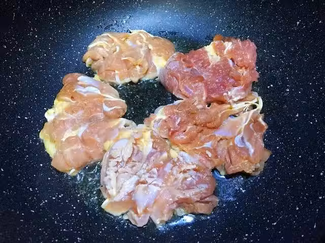 5、等到雞腿煎好之後,接著是將雞腿翻面,繼續的來煎。大概繼續煎四分之左右就可以盛出來了。