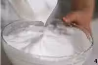 5.蛋黃里加入剩下的30克細砂糖,用打蛋器打發至顏色變淺,體積蓬鬆