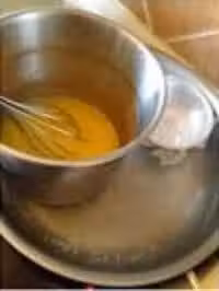 6.水飴倒入蛋糊中,攪勻