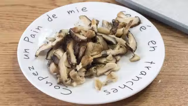 3、西紅柿泡過以後去皮,輕輕一撕就乾淨了,乾貝撕小塊兒,香菇切丁,所有的食材就全部備好了;
