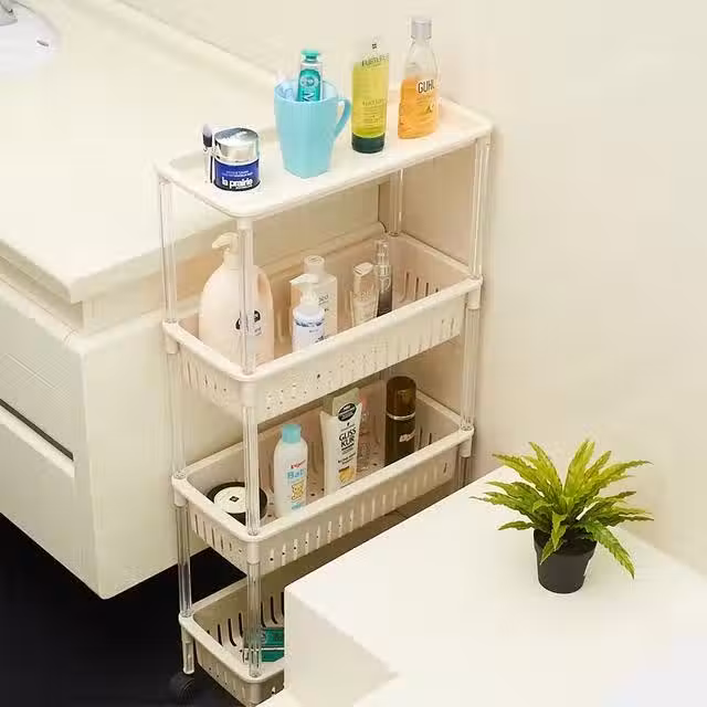 廚房衛生間夾縫置物收納架,放在小戶型衛生間夾縫處,不佔地,加大收納空間。置物架的鏤空設計,防潮透氣,更容易存放物品。