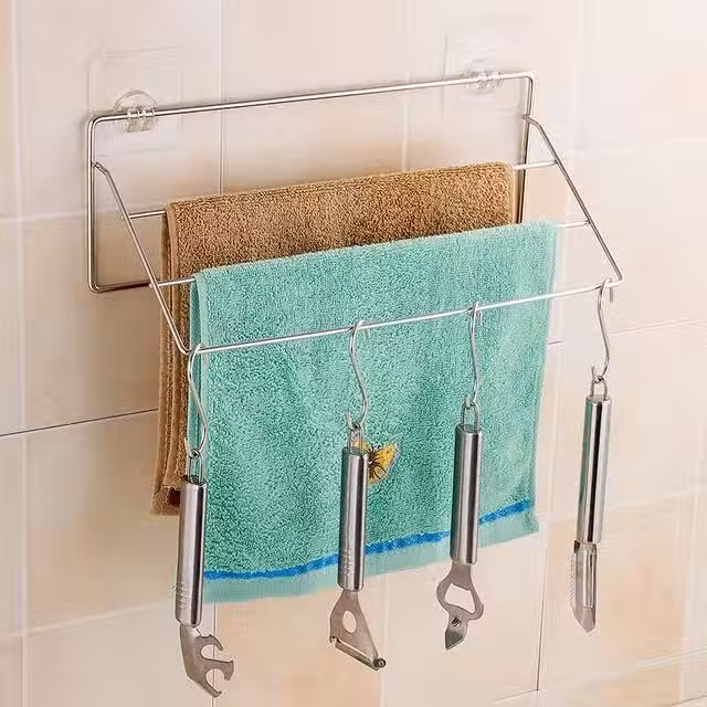 能夠在上面瀝干水分,置物架上面可以收納各種雜物,這種壁掛的置物架真的很方便,置物架的設計很巧妙。