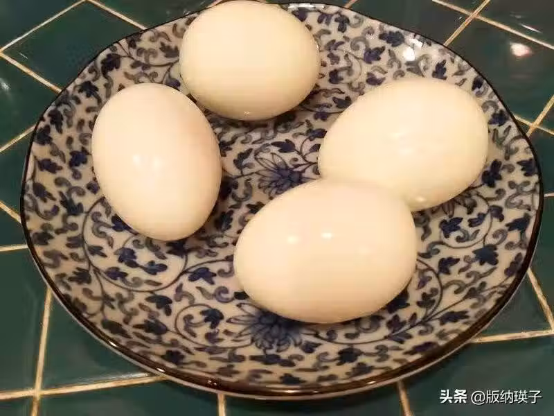 第二步:雞蛋連殼煮熟,出鍋去殼(熱的時候去殼)。