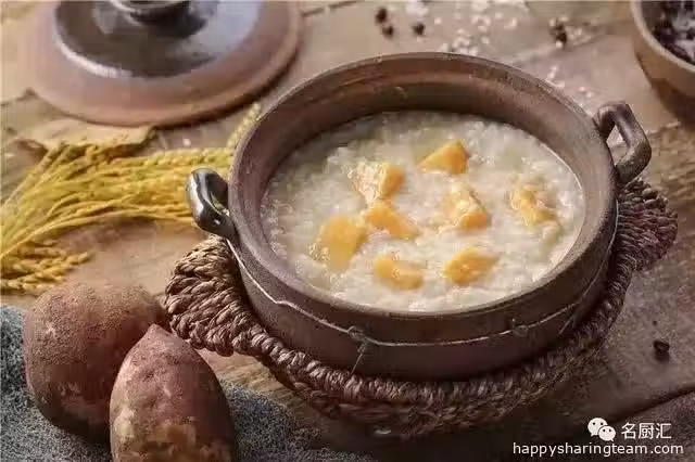 2.沙鍋內加入白粥(見「山藥香菇粥」),大火煮開,加入紅薯丁,加入白糖攪拌均勻即可。