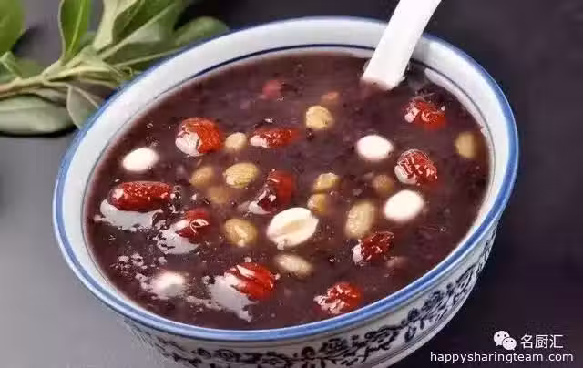 原料:芡實,紫米,桂圓,紅棗,紅豆,黑豆,花生,薏米,核桃,玉米粉,冰糖,紅糖。