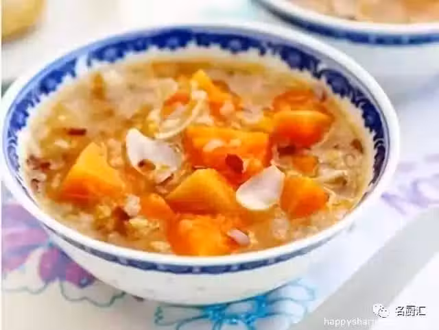 原料:南瓜半個(約300克)、香米100克、糯米100克、百合、桂圓肉、紅棗、蓮子各20克,白糖、鹽少量。