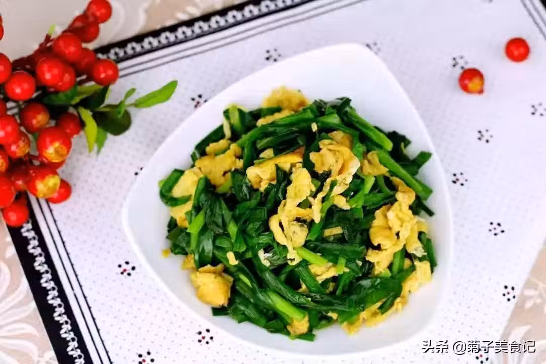 第三步:把炒好的雞蛋用鍋鏟壓成小塊推到一邊,放入韭菜翻炒,翻炒過程中放入鹽和蚝油,翻炒均勻,簡單又美味的韭菜炒蛋就做好了