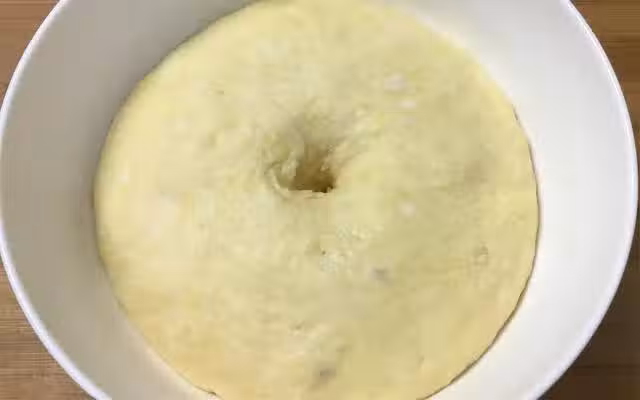 3、餳發好的面用手一按不回彈,這樣就可以了。取出面放在面板上,面全是蜂窩狀,用手揉搓排出空氣。搓成了長條,切成均等的劑子,把每個劑子用大拇指手腕處揉搓,然後團圓,蓋上保鮮膜防止表皮干。