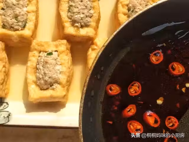 1、買不到這種油炸豆腐塊的話,可以自己用老豆腐做。不粘鍋倒入適量油加熱,放入切成長方形的老豆腐塊,中小火煎到表面金黃色。或者將肉釀入老豆腐中,然後直接下鍋煎也可以。做法還挺多的,怎麼好吃方便就怎麼做吧。