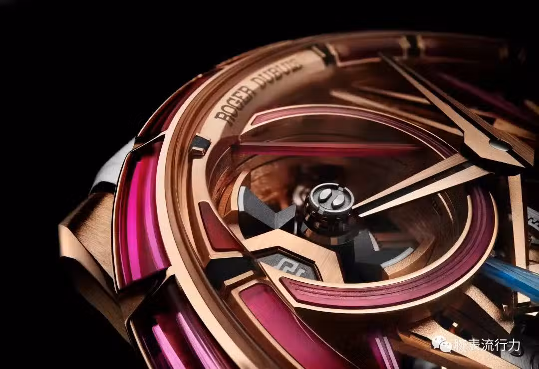 然而,改進並不止於此。為了追求更高的效率與能量傳輸,連擒縱機構的形狀也得到了改進,並搭配金剛石塗層的矽擒縱叉瓦及新型潤滑油。羅傑杜彼對機械設計的執著、手工製作的高品質及精細維護相結合,從而獲得了日內瓦印記認證,此乃高級制表業最嚴苛的標準之一。