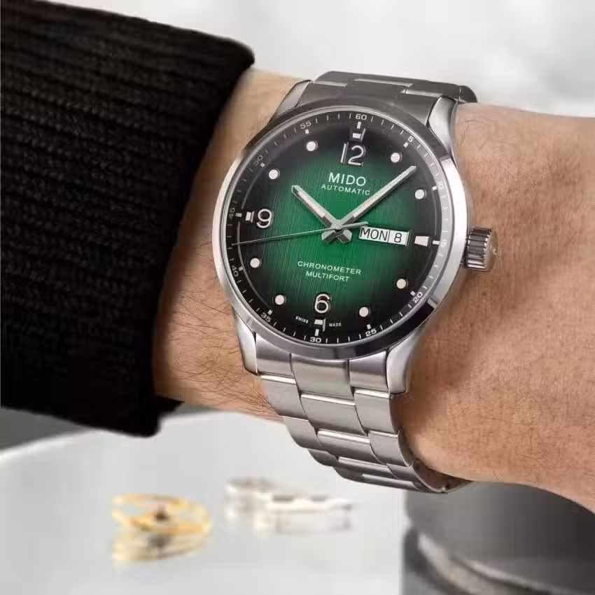 全新舵手系列千禧腕錶配備經瑞士官方天文台(COSC)認證並搭載矽遊絲的美度Caliber 80 天文台認證全自動機械機芯,這不僅彰顯出品牌自1918年創立以來追求創新和承襲制表技藝的初心,更是展現其對卓越精準度的不息追求。該機芯在提供更出色的防震、防磁功能的同時,可達80小時的動能存儲。通過透明背底可清晰觀測其精雕細刻的機芯,採用藍色螺釘,自動擺陀裝飾有日內瓦波紋和MIDO標誌。