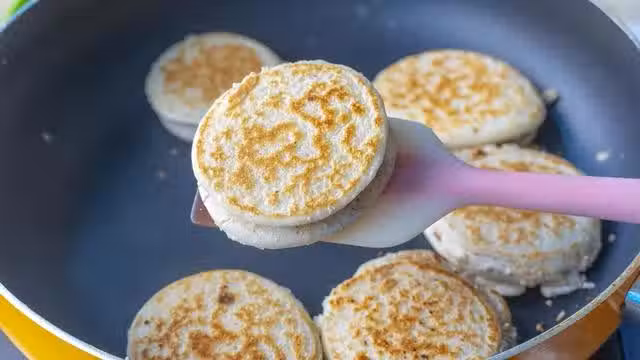 4、表面刷點油,翻個面繼續烙,烙至兩面金黃出鍋,軟糯香甜的糯米餅做好了。