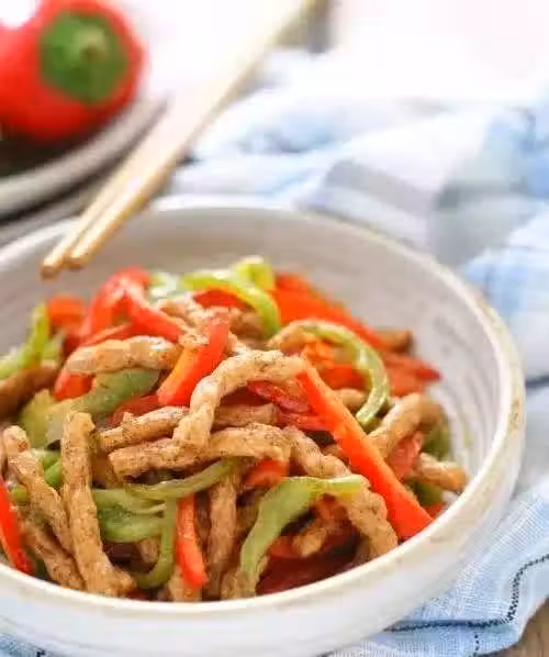 4、放入素肉絲略炒(炒的過程中如果覺得比較干可以加少許清水)
