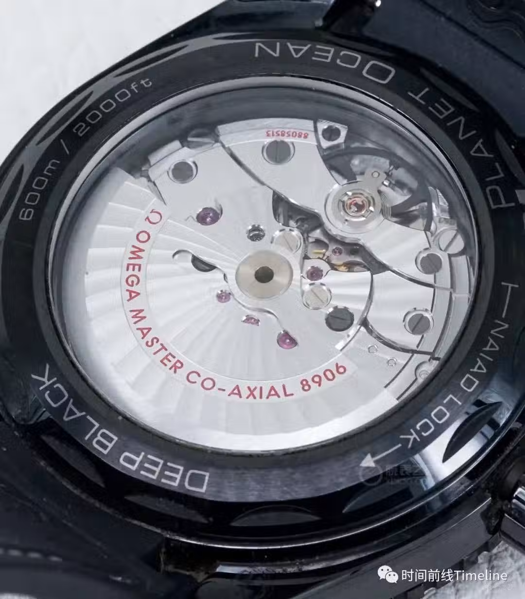 同時,8900使用歐米茄標誌性的阿拉伯風格日內瓦條紋裝飾,上層夾板是日內瓦條紋裝飾,下層是魚鱗紋裝飾,螺絲、擺輪、發條都做了鍍黑。