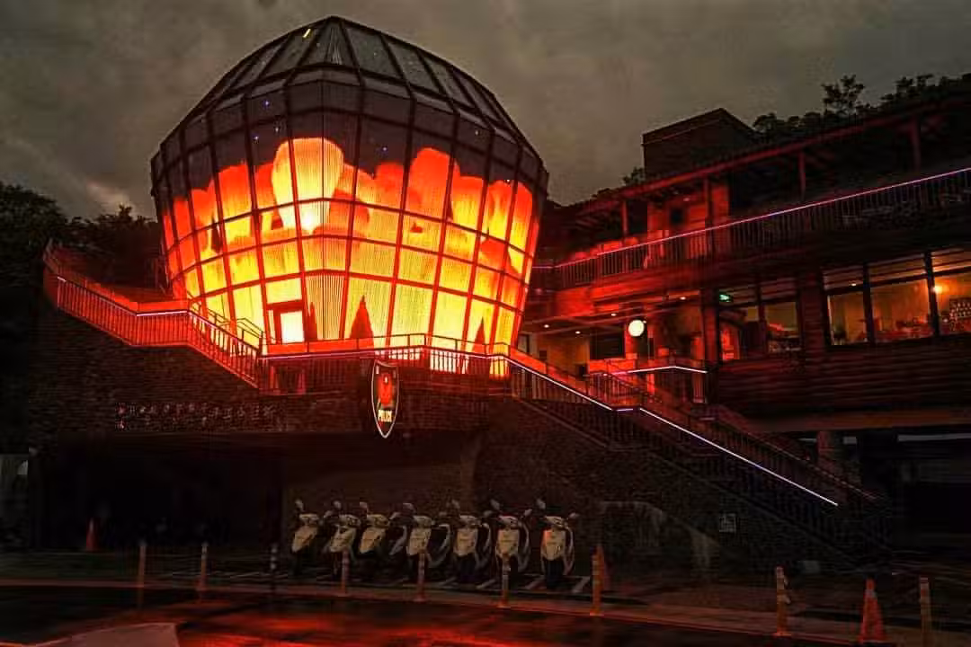 最後要離開之前,別忘了在車站前超寬廣的鐵道上面拍一張全景照喔!如果有待到晚上的話,可以走到昔日的天燈派出所,現為菁桐天燈館,持續經營電子天燈燈光秀等服務。來過的朋友都說實際點燈的效果比想像中還有趣呢